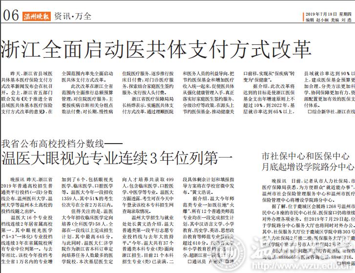 温医大 16 个专业投档线连续2年居省属高校第一,其中眼视光医学(“5+3”一体化)专业投档线连续3年在省属院校所有专业中位列第一。与去年相比,该校今年投档考生全省1万名内的专业增加到了 6 个,包括眼视光医学、临床医学、口腔医学等。温医大今年一段招收1359人,其中51%的考生位次号在全省2万名以内。