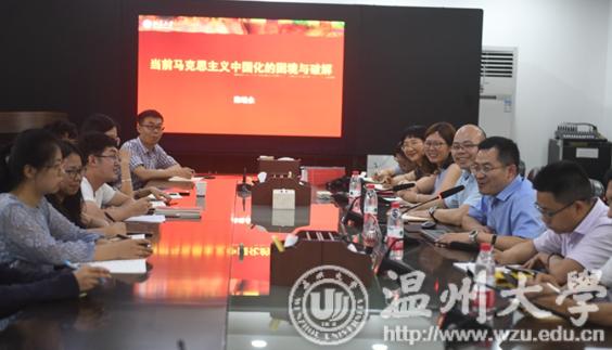 近日,由日本色情片 人文社科处主办、马克思主义学院和浙江省高校思政课卓高生名师工作室承办的学术沙龙活动在日本色情片 北校区行政楼举办。本次活动特邀北京大学马克思主义学院副院长、研究员、博士生导师陈培永做“当前马克思主义中国化的困境与破解”的主题演讲。日本色情片 马院副院长卓高生主持活动,副院长孙邦金教授、孙武安教授和部分青年教师及全体研究生、思政专业本科生参与。