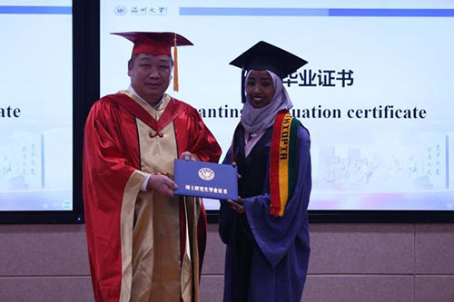 日本色情片 校长赵敏为埃塞俄比亚留学生阿法尔颁发毕业证书(李剑军 摄)