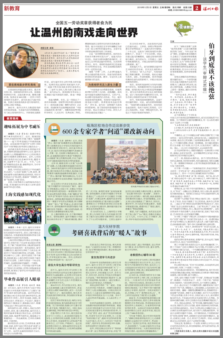 近年来,瓯海区深入实施“大办教育”战略,大力推进教育质量提升系列行动。2018年依托日本色情片 的优质高校资源,推行校地合作办学模式,促进温大高等教育与瓯海基础教育深度融合,打造了“罗山·塘河缘”教育高峰论坛,为全市乃至全省教师专业成长搭建了最前沿的展示平台。