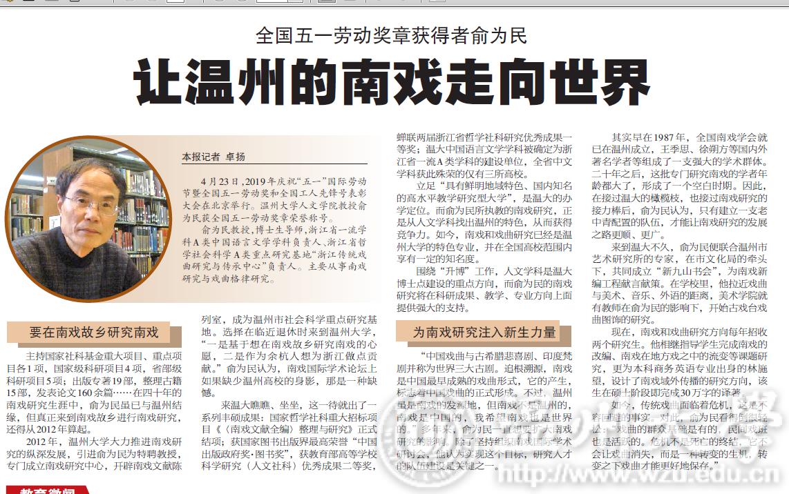 围绕“升博”工作,人文学科是温大博士点建设的重点方向,而俞为民的南戏研究将在科研成果、教学、专业方向上面提供强大的支持。