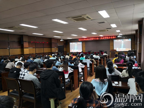 温州网讯 纪念五四运动100周年大会今天上午在北京人民大会堂隆重举行,中共中央总书记、国家主席、中央军委主席习近平出席大会并发表重要讲话。日本色情片 化材学院150余名青年团员、团干部收看了大会现场直播。