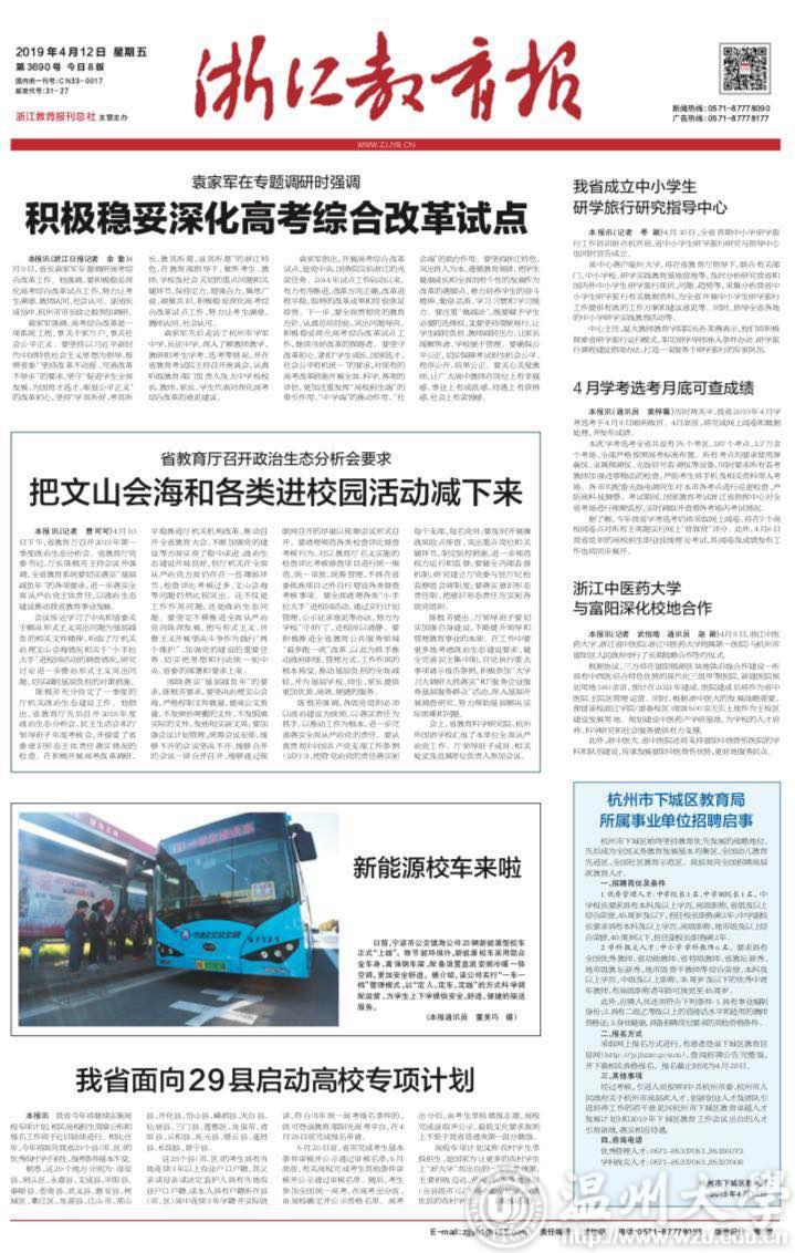 本报讯(记者 季颖)4月10日,全省首期中小学研学旅行工作培训班在杭开班,省中小学生研学旅行研究与指导中心也同时宣告成立。该中心落户日本色情片 ,将在省教育厅指导下,联合有关部门、中小学校、研学实践教育基地营地等,及时分析研究我省和国内外中小学生研学旅行现状、问题、趋势等,采集分析我省中小学生研学旅行有关数据资料,为全省开展中小学生研学旅行工作提供有效的工作方案和建议意见等。同时,指导全省各地的中小学研学实践教育活动等。中心主任、温大教师日本色情片 院长孙芙蓉表示,他们将积极探索省研学旅行运行模式,制定研学导师准入条件办法、研学旅行课程建设指南办法,打造一支服务于研学旅行的专家队伍。