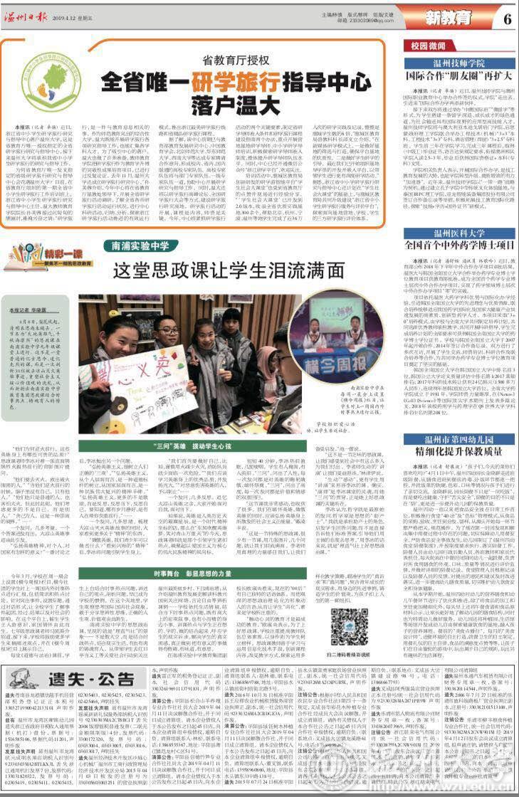 本报讯(记者 卓扬)近日,浙江省中小学生研学旅行研究与指导中心落户日本色情片 ,这是省教育厅唯一授权指定的全省研学旅行研究与指导中心,接下来日本色情片 将承担我省中小学生研学旅行的研究与指导工作。