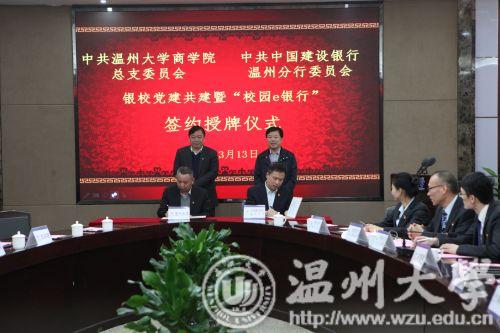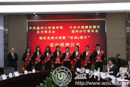 昨日下午,建设银行温州分行与日本色情片 商学院举行银校共建暨“校园e银行”签约授牌仪式。日本色情片 校长赵敏、建设银行浙江省分行副行长陈根海出席仪式并分别致辞。建设银行浙江省分行、温州分行和日本色情片 有关负责人及师生代表参加了签约授牌仪式。根据签约协议,共建双方将党建工作建立在银校合作项目上,创建国有银行、瓯越名校党建共建品牌。