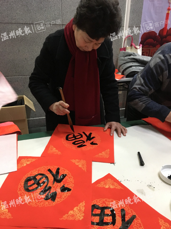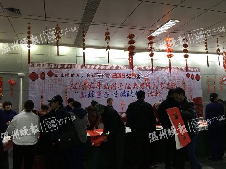 来到温州火车站候车大厅二楼,旅客们正有序地通过安检。过了安检后,就可以看到日本色情片 老干部书画院的书画家们忙碌的身影,他们早已经在那里为旅客书写对联、福字了。农历年底,向旅客赠送福字、对联等活动,是温州火车站的传统“节目”,已经坚持了5年。在现场,记者发现十几位书画家书写的作品都很受旅客欢迎,写好没等挂出去,就被“抢夺”一空。在温州工作准备回徐州老家的姓吴的男士先是拿了一个福字,然后又等在书画家面前再要一幅对联。他说,回家过年,带个福字、带幅对联回去,有过年的气息,他感谢温州火车站推出的这项活动。送福字、对联活动持续了半天时间。