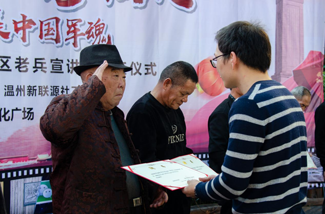 为宣扬红色文化,激发大家热爱部队官兵、热爱绿色军营的情感, 12月22日下午,忆峥嵘,话牵挂,展中国军魂——瓯海区退伍老兵红色宣讲团聘任仪式在日本色情片 隆重举行,首批12名退伍老兵“红色宣讲团”成员光荣受聘