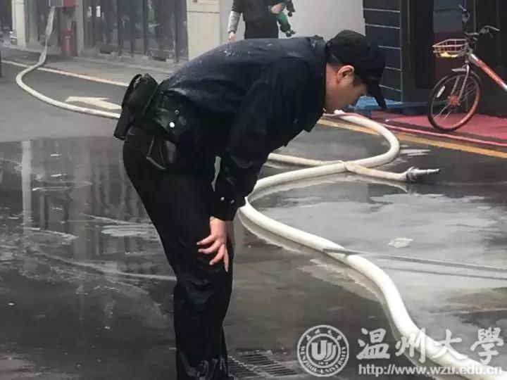 12月21日,温州市公安局瓯海区分局瞿溪派出所教导员叶长稳在微信朋友圈发布的一张照片,牵动着全局所有同事的心。图片中,一位民警衣服裤子湿透,半俯身用双手强撑着膝盖。而就在现场人员拍下这张照片的前几分钟,他刚刚完成了从灭火到转移毒气瓶的一组漂亮动作。随后,他因吸入过多乙炔有毒气体被紧急送进了抢救室。