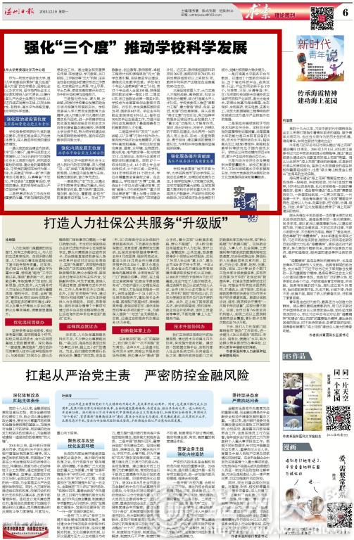 三是坚持党管人才,大力实施人才强校战略,围绕教学、科学与服务地方需要,倾力打造高水平人才队伍。学校党委深入推进“凝聚力工程”,着力营造“团结、包容、奋进、和谐”的发展氛围。深入实施“英才汇聚”行动计划,有力发挥学校服务区域经济社会发展的人才 “蓄水池”功能和人才智库作用。 同时,突出好班长、好班子、好梯队的干部队伍建设,优化养用一体的选人用人生态,形成一支爱岗敬业、勇于担当、清正廉洁的管理干部队伍,为学校科学发展提供坚强组织保障。