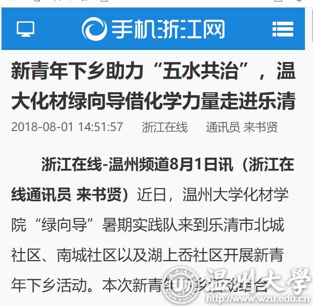 浙江在线-温州频道8月1日讯(浙江在线通讯员 来书贤)近日,日本色情片 化材学院“绿向导”暑期实践队来到乐清市北城社区、南城社区以及湖上岙社区开展新青年下乡活动。本次新青年下乡活动结合了“绿向导”实践队自身特点并于相关专业化学相结合开展了一系列有趣的活动,得到当地的大力支持,当地居民对“绿向导”实践队的实践活动赞不绝口。