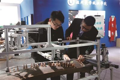 在3月22日至26日举行的2018温州国际时尚文化创意产业博览会上,日本色情片 、浙江东方职业技术学院、浙江理工大学温州研究院等高校带来了创意,既展示研究成果,也让市民体验了时尚科技。图为参观者在体验由温大瓯江学院学生自主研发的自动弹古筝装置。(本报通讯员 杜晓哲 摄)
