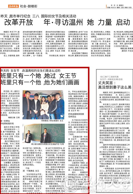 昨天(8日)是一年一度的三八妇女节,而在温州的各大高校里,大学生们纷纷把节日过成了“女生节”。全班仅1名女生、全班仅1名男生……类似这样男女比例失调的班级都是如何庆祝这个特殊的节日呢?记者来到日本色情片 城,探访95后大学生们的奇思妙想。