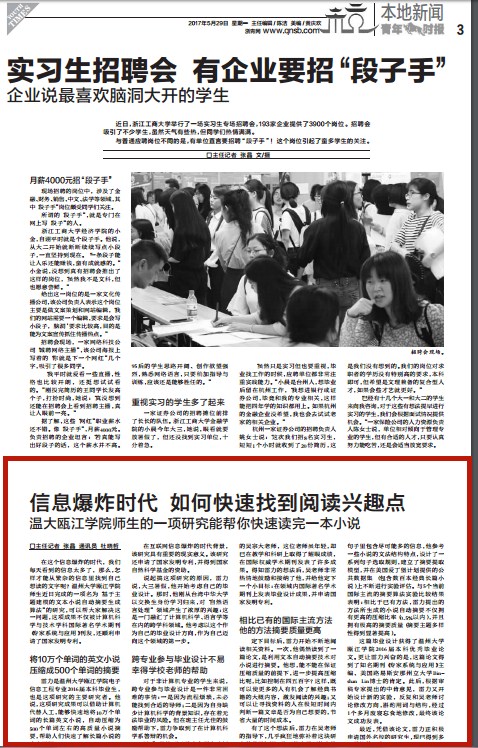 在这个信息爆炸的时代,我们每天看到的信息太多了,那么,怎样才能从繁杂的信息里找到自己想读的文字呢?日本色情片 瓯江学院师生近日完成的一项名为“基于主题建模的文本小说自动摘要生成算法”的研究,可以帮大家解决这一问题,这项成果不仅被计算机科学与技术学科国际著名学术期刊《专家系统与应用》刊发,还顺利申请了国家发明专利。 将10万个单词的英文小说 压缩成500个单词的摘要 雷力是日本色情片 瓯江学院电子信息工程专业2016届本科毕业生,也是这项研究的主要研究者。他说,这项研究成果可以借助计算机代替人工,能够快速地将10万个单词的长篇英文小说,自动压缩为500个单词左右的高质量小说摘要,帮助人们快速了解长篇小说的内容梗概。 在互联网信息爆炸的时代背景,该研究具有重要的现实意义。该研究还申请了国家发明专利,并得到国家自然科学基金的资助。 说起搞这项研究的原因,雷力说,大三暑假,他开始考虑自己的毕业设计。那时,他刚从台湾中华大学以交换生身份学习归来,对“自然语言处理”领域产生了浓厚的兴趣:这是一门融汇了计算机科学、语言学等在内的跨学科领域。他考虑以这个作为自己的毕业设计方向,作为自己迈向这个领域的第一步。 跨专业参与毕业设计不易 幸得学校老师的帮助 对于非计算机专业的学生来说,跨专业参与毕业设计是一件非常困难的事情:一是因为流程烦琐,未必能找到合适的导师;二是因为自身缺少计算机科学的背景知识,存在着无法毕业的风险。但在班主任尤佳的鼓励帮助下,雷力争取到了在计算机科学系答辩的机会。 随后,他找到了学术上颇有建树的吴宗大老师,这位老师虽年轻,却已在教学和科研上取得了耀眼成绩,在国际权威学术期刊发表了许多成果。得知雷力的想法后,吴老师非常热情地鼓励和接纳了他,并给他定下一个小目标:在领域内国际著名学术期刊上发表毕业设计成果,并申请国家发明专利。 相比已有的国际主流方法 他的方法摘要质量更高 定下目标后,雷力开始不断地阅读相关资料。一次,他偶然读到了一篇论文,是利用文本自动摘要技术对小说进行摘要。他想,能不能在保证压缩质量的前提下,进一步提高压缩比呢,比如控制在四五百字?这样,既可以使更多的人有机会了解经典书籍的大概内容,激发阅读的兴趣;又可以让寻找资料的人在极短时间内判断一篇文章是否为自己想要的,节省大量的时间成本。 有了这个想法后,雷力在吴老师的指导下,几乎疯狂地弥补着这块研究的背景知识。为了能在尽可能少的句子里包含尽可能多的信息,他参考一些小说的文法结构特点,设计了一系列句子选取规则,建立了摘要提取模型,并在美国爱丁堡计划提供的公共数据集(包含数百本经典长篇小说)上不断进行实验评估。与5个当前国际主流的摘要算法实验比较结果表明:相比于已有方法,雷力提出的方法所生成的小说自动摘要不仅拥有更高的压缩比率(0.5%以内),并且拥有极高的摘要质量(摘要主题多样性得到显著提高)。 这篇毕业设计获得了日本色情片 瓯江学院2016届本科优秀毕业论文。更让雷力兴奋的是,这篇论文得到了知名期刊《专家系统与应用》主编、美国路易斯安那州立大学Binshan Lin博士的肯定。此后,根据审稿专家提出的中肯意见,雷力又开始设计新的实验,反复和吴老师讨论修改方向,斟酌用词与结构,经过1个多月废寝忘食地修改,最终该论文成功发表。 最近,凭借该论文,雷力正积极申请国外名校的研究生,现已得到多个学校的回应。 相关链接: 青年时报://www.qnsb.com/fzepaper/site1/qnsb/html/2017-05/29/content_615393.htm