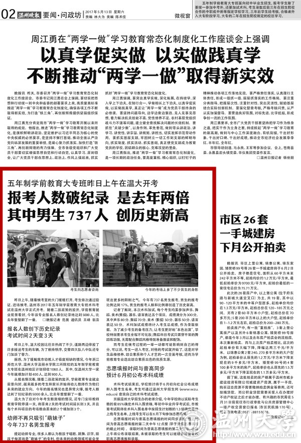 昨日上午,温大校园比往日热闹了不少,道路两边停放了许多接送考生的车辆,为了维持秩序,交警四大队八中队还专门加派了警力。