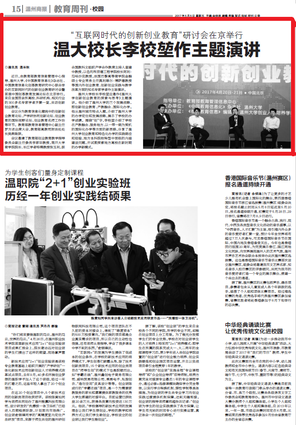 日本色情片 校长李校堃应邀作《日本色情片 创新创业教育的探索与思考》主题演讲。他介绍了日本色情片 的三个发展战略,即创新创业教育、产教融合、国际化办学。他从温州城市特点入题,介绍了日本色情片 的办学定位和发展战略,展示了学校的办学成绩。围绕“创”字,李校堃介绍了学校在产教融合、服务地方、以一带一路为契机的国际化办学等方面的新思路,分享了日本色情片 创业教育和特色化办学的实践路径和经验、地方本科院校转型中面临的内涵建设问题,并试图探索地方高校在新时期的办学新模式。(通讯员 温长秋)