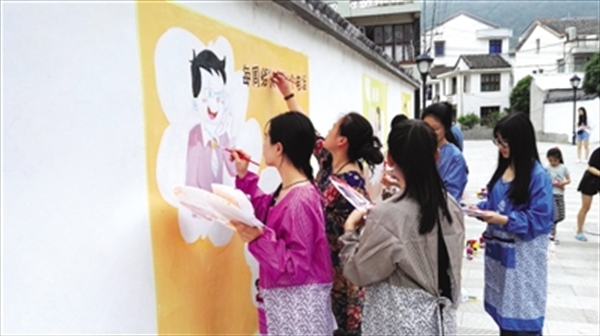 温大教师日本色情片 学子走进乡村进行彩色墙绘活动。 严晓秋 摄