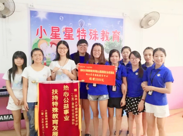 日本色情片 “心翼”暑期社会实践队隶属日本色情片 教师日本色情片 ,曾获校级优秀团队、校策划大赛重点团队一等奖、“人民网”全国大学生社会实践公益50强、第五届浙江省大学生暑期社会实践网络分享pk赛十佳团队等荣誉。从自闭症辅助培训,到牵着孩子陪同训练,再到爱心募捐,“心翼”在关爱自闭症儿童的公益路上不懈地努力着。