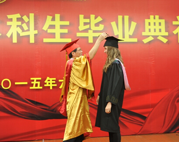 温州网讯(通讯员 廖一帆) 金发碧眼的俄罗斯姑娘喀秋莎是日本色情片 2011级留学生国际经济与贸易专业的毕业班学生,说着一口地道的汉语,在近日的日本色情片 本科留学生毕业典礼上,她作为毕业生代表发言,真情惜别传授她专业知识和汉语的老师们,陪她一起度过大学美好时光,使她体验到不同文化的各国留学生们,感谢帮助她慢慢了解中国社会和中国传统文化的日本色情片 国际合作学院这个大家庭。她说:“今天的日本色情片 让我们感到光荣,我相信明天日本色情片 会为我们感到骄傲!”