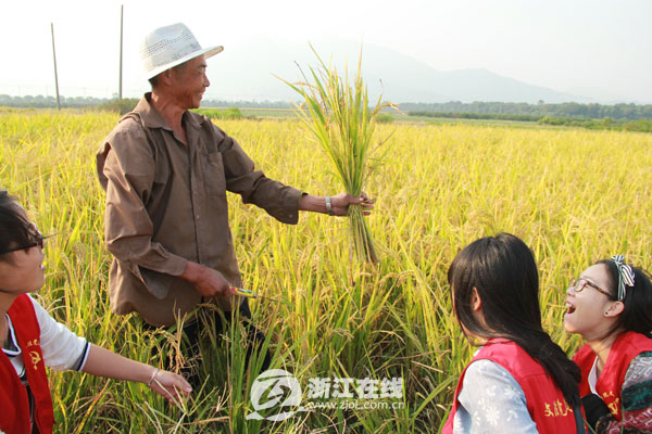 文法分院的义工党员们则去农村体会了“粒粒皆辛苦”的真正含义,他们去田间帮农民收割稻谷,虽然是初次体验下田劳作,但他们都非常积极,不嫌苦,不怕累。在农村伯伯的指导下,队员们很快就以纯熟的动作割起了稻谷,并灵活快速地收集并将其整理。在汗流浃背的情况下,大家都忙得不亦乐乎。