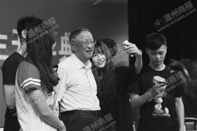 每年的9月,孙义燧都要回温州,与温大城市学院的大学生们进行面对面交流。因此,记者有幸接触了孙院士6次。可能是多年在校当老师、当院长的关系,孙院士特别喜欢与大学生接触。在今年的开学典礼上,孙院士还提出与大学生们现场玩自拍。这一提法引来了全场热烈的掌声,“院士好萌!”场下的学生们这样评价这位78岁的老人。