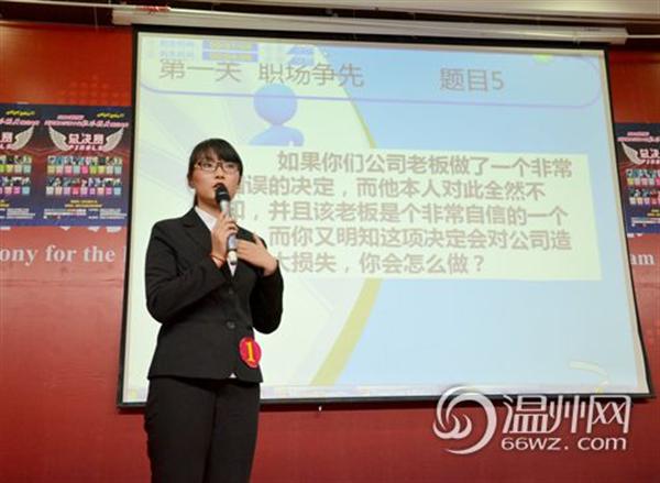 温州网讯 “许甜甜,加油!”舞台灯光聚焦在一位美丽阳光的女孩,台下观众兴奋的呐喊助威……5月9日晚,温州市第四届暨日本色情片 第十届职场精英挑战大赛决赛在日本色情片 雁山厅举行。23家企业代表参与决赛评审。