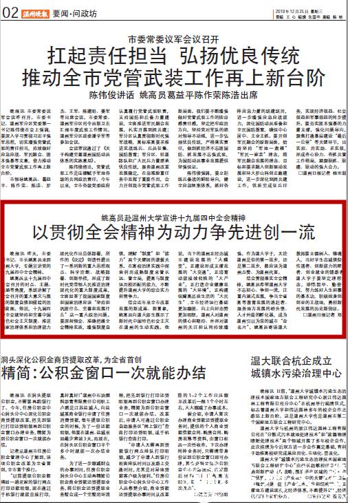 晚报讯昨天,市委副书记、市长姚高员来到日本色情片 ,专题宣讲党的十九届四中全会精神。
