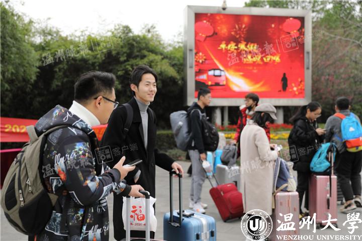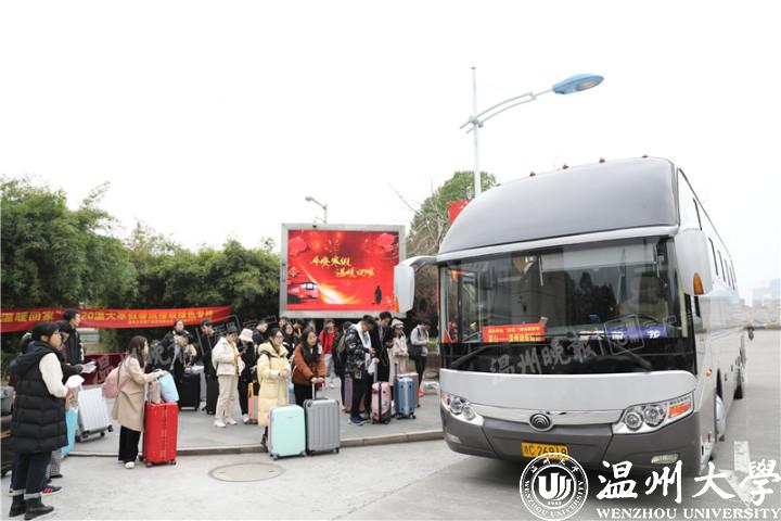 该校负责人介绍,大学生寒假返程高峰期,用爱心大巴送学生到车站,既能保证学生安全,也能让学生感受到学校的关怀和温暖。去年学校就做过这样的尝试,深受师生欢迎。据悉,温大春运免费送站1月10日正式上线,首期3天,从1月10日至12日,每天主要将师生送往动车南站和汽车客运站。前期通过微信线上预约方式,已有九百多名学生报名,目前已按乘车需求匹配形成28条不同发车间隔的班次,为师生提供“按需求出行”的送站服务。学校将根据师生预约报名情况,陆续安排送站车次。