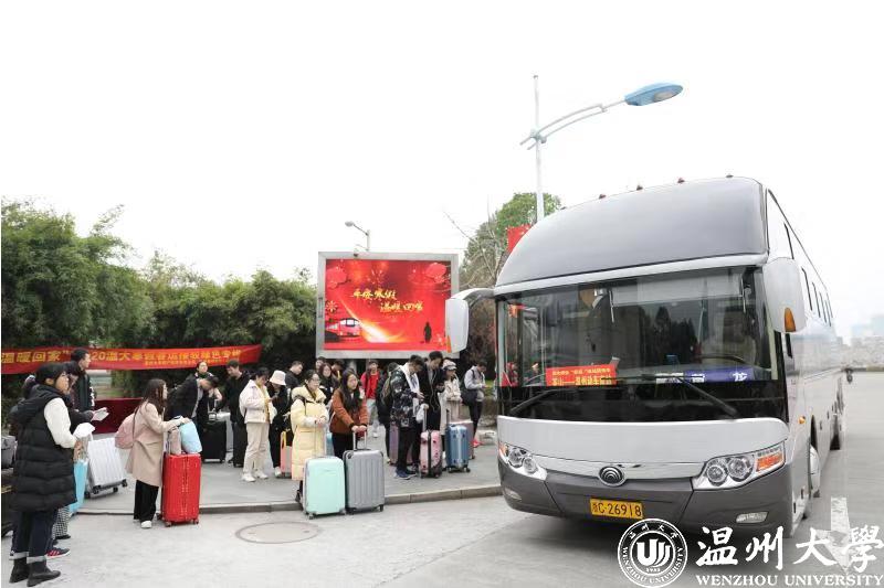 该校负责人介绍,大学生寒假返程高峰期,用爱心大巴送学生到车站,既能保证学生安全,也能让学生感受到学校的关怀和温暖。去年学校就做过这样的尝试,深受师生欢迎。据悉,温大春运免费送站1月10日正式上线,首期3天,从1月10日至12日,每天主要将师生送往动车南站和汽车客运站。前期通过微信线上预约方式,已有九百多名学生报名,目前已按乘车需求匹配形成28条不同发车间隔的班次,为师生提供“按需求出行”的送站服务。学校将根据师生预约报名情况,陆续安排送站车次。