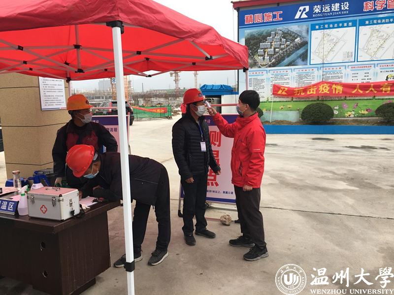 许多多同学为出入员工检测体温