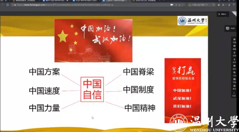 “全体起立,向本次疫情中英勇牺牲的医务人员和不幸去世的患者默哀。”这是2月25日下午,马克思主义学院项淳芳老师在新学期给学生讲授的第一课,师生们隔着电脑屏幕,通过课堂派直播网络平台,进行跨越时空的特殊默哀仪式。