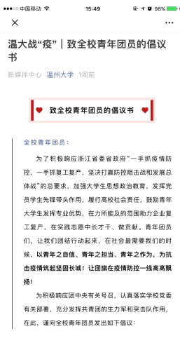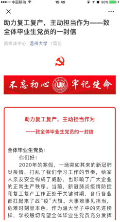 据了解,截止3月12日,该校13个学院的一大批毕业班学生积极参与到280多家企业的复工复产中,充分彰显了当代青年大学生的责任与担当。