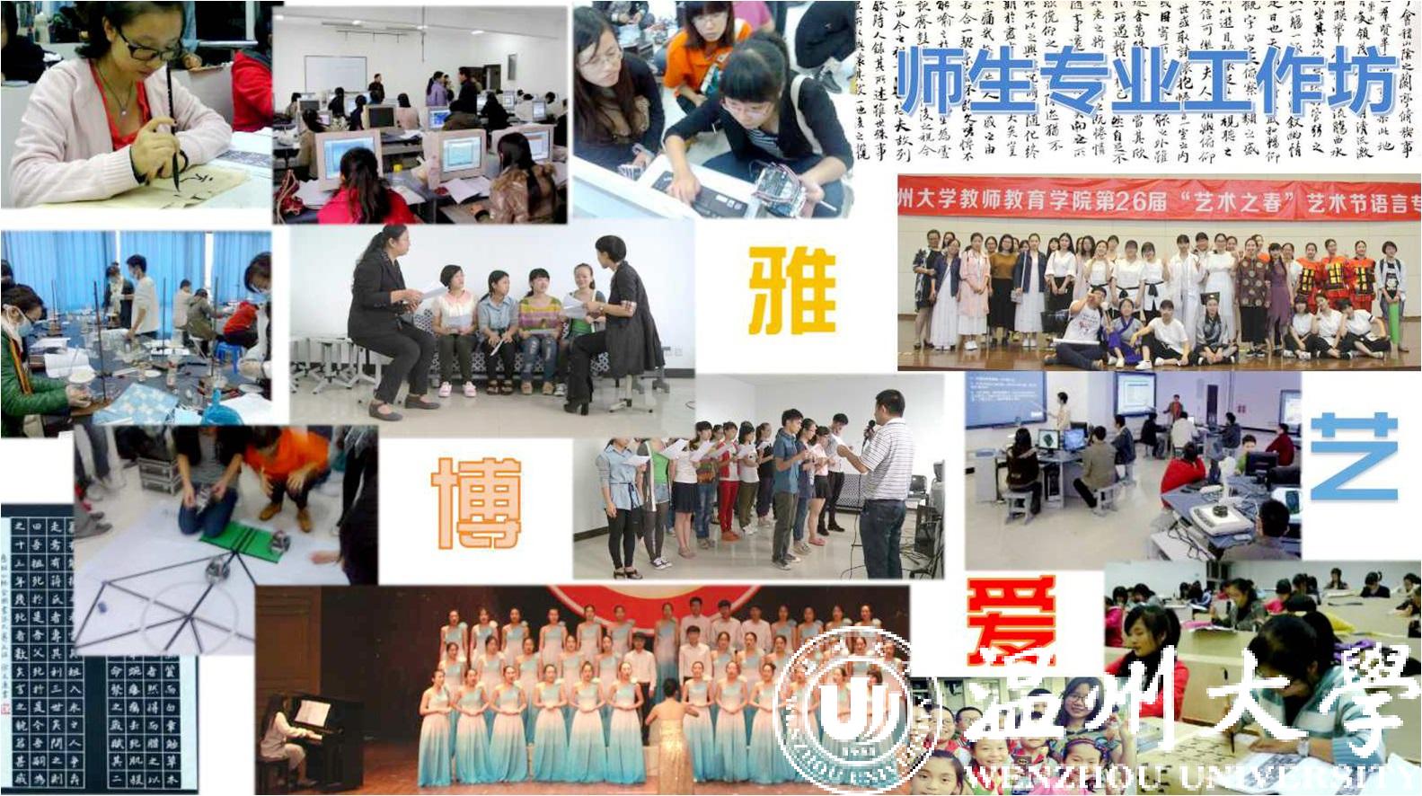 结合学科竞赛与专业活动打造的“师生专业工作坊”,也是温大日本色情片 师范生实践教育的一张金名片。语言、书法、演讲、文学创编、儿童剧社等师生专业工作坊既培养了学生兴趣爱好和健康个性,又充分体现了“师生专业学习共同体”育人自育的特点。