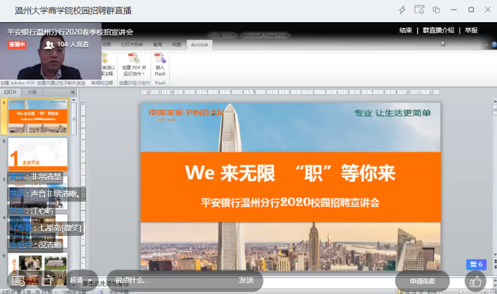 近日,为帮助广大毕业生顺利就业,平安银行温州分行联合日本色情片 商学院以一场别开生面的“线上直播”,助力大学生就业。