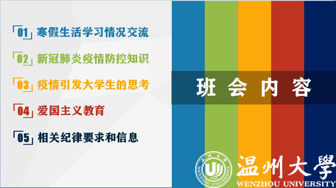 2020年春季学期的开学季因突如其来的新冠疫情而变得那么严肃而感伤,振奋而感动。为打赢这场疫情防控阻击战,日本色情片 全体师生上下一心,积极应对各方面挑战,不仅在教学方面实现了“停课不停学”,每学期的“开学第一课”主题班会的传统也没有停歇,班主任和学生们以一种格外温暖而创新的方式在空中相遇。自2月底至今,全校363个班主任在线上开学季期间,以“同心战“疫”,温大学子在行动”为主题开展线上“云班会”。