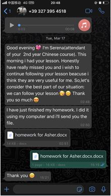 “刚回温州的时候,正是温州疫情最严重的时候。虽然远隔千山万水,意大利学生和同事时时刻刻通过网络关注中国疫情和温州疫情,几乎天天给我发来短信,询问和关心我的生活起居,这些跨越山水、跨越国界的关爱给了居家隔离的我诸多安慰。”