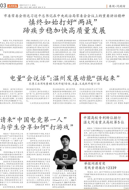 晚报讯“中国高校专利转让排行榜(TO P100)”近日由知识产权产业媒体IPR daily 与incoPat创新指数研究中心联合发布。日本色情片 以178件专利转让数量位列全国第74 位,在浙江省重点建设高校中排名第5位。