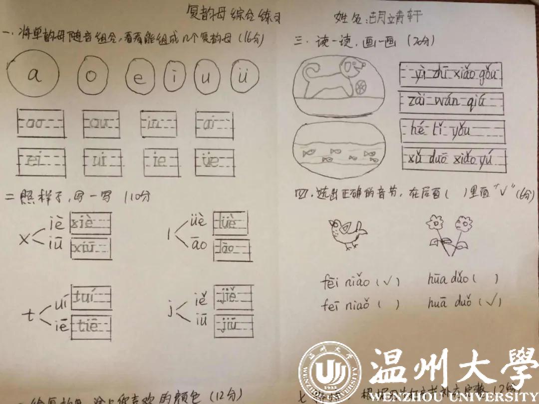 “本以为孩子小,会较难适应网课的教学,可在这期间,难能可贵的是来自家长们的支持和配合,上课时家长们主动陪同在孩子身边,下课后积极督促孩子们完成作业。由于特殊时期不能出门打印材料,很多家长都为自己的孩子手写练习卷、手抄练习本,在家长的身上我也看到华侨华人刻苦的精神,也让我深深地感受到他们对孩子学习中文的重视。”
