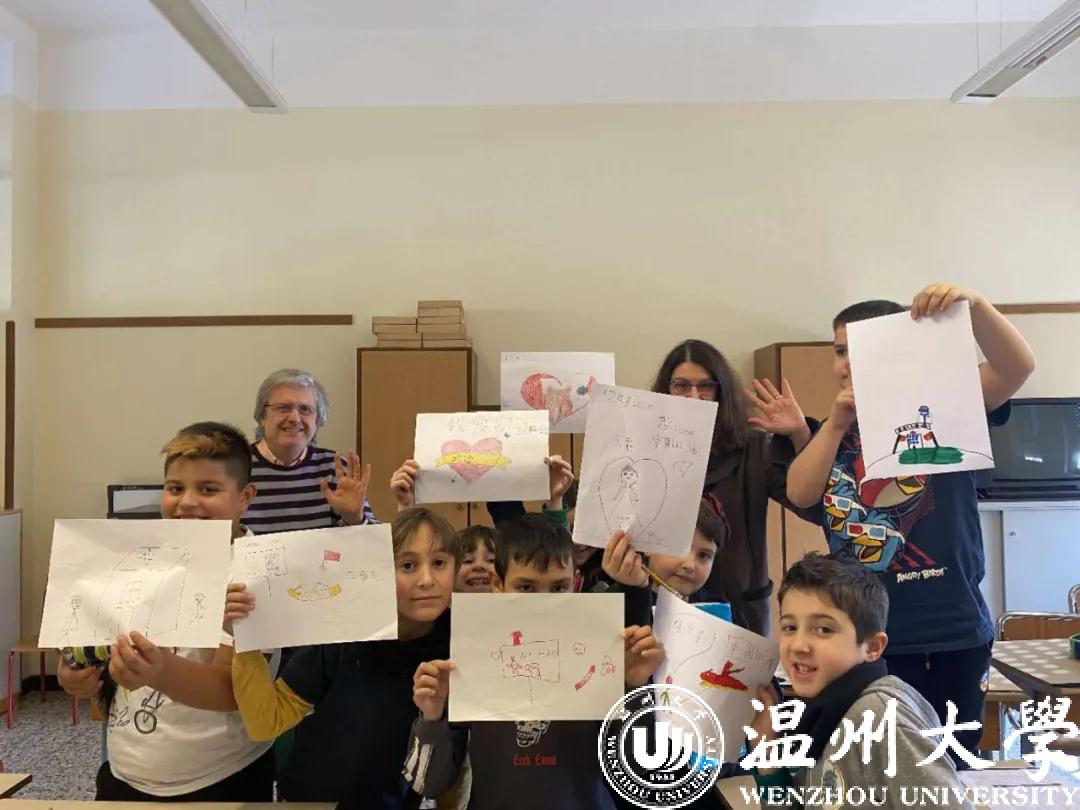 “期间,我还组织任教的意大利BETLEM学校三、四、五年级学生上疫情知识普及课,给孩子们观看中国抗疫纪录片。那几节课上,我很好地引导孩子们正确认识新型冠状病毒,了解预防措施,并动员孩子们用画笔给远在中国的小伙伴传递爱。”