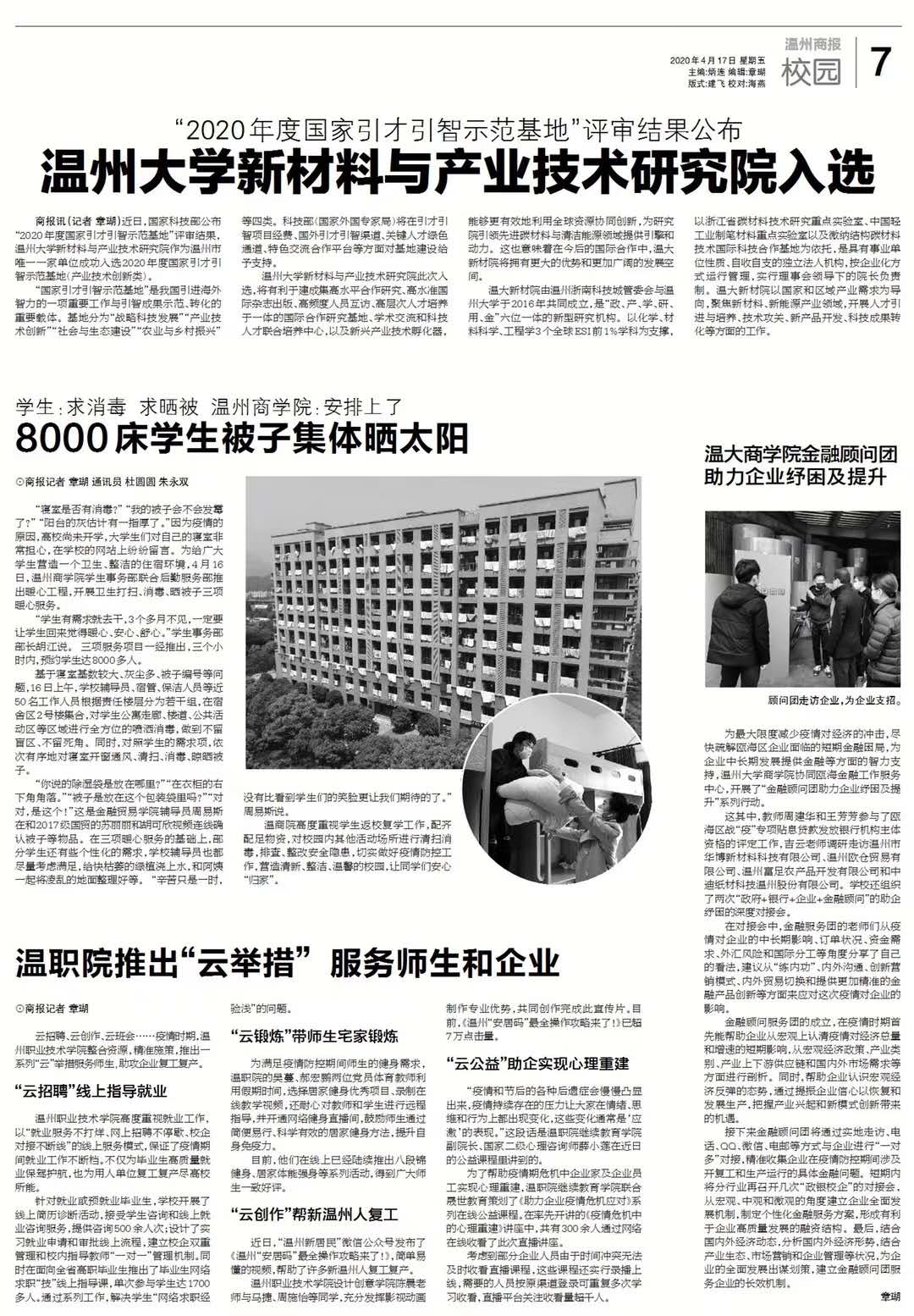 商报讯(记者 章瑚)近日,国家科技部公布“2020年度国家引才引智示范基地”评审结果,日本色情片 新材料与产业技术研究院作为温州市唯一一家单位成功入选2020年度国家引才引智示范基地(产业技术创新类)。