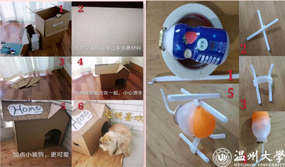 进行一次旧物改造:“倡环保·享生活”,倡导全校学生利用居家隔离产生的废旧物品及本土资源,结合生活实践变废为宝,和谐地球大家,也为幸福小家贡献力量。