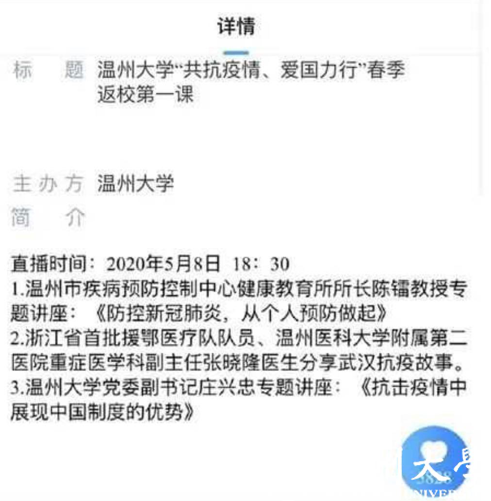 通过“共抗疫情、爱国力行”春季返校第一课,全体温大师生齐聚云端大课,进一步解读防疫知识,增强防范意识,淬炼抗疫精神,凝聚家国情怀,必将为切实扛起“重要窗口”使命担当,交出开学返校满意答卷提供满满正能量。