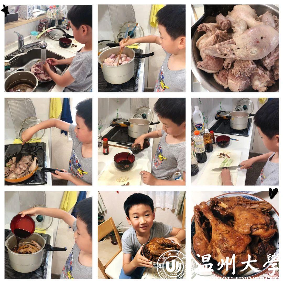 日本的杨弼丞同学年仅8岁,从未落下学习中的任何一次课程,总是在群中第一个说出“老师,我作业完成了。”中文作业一笔一划,古诗朗诵充满情感,满怀对中文学习的饱满热情。5月9日,在收听了《中国传统故事之东坡肉的故事》之后,小杨同学跟着“打卡”小任务的指引从东坡肉的烧法中获得灵感,烹饪出一道色香诱人的红烧鸭子,并在作业中连连赞叹“在网上夏令营中学会了一道美味的中国菜”。