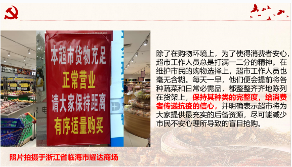 黄旖宁以独特地视角向观众展示了“超市人”这一群体在疫情防控背景下的日常生活和使命担当。她用镜头记录下了“超市人”忙碌的一天,鼓励我们对所有抗疫中忙碌的身影致以最崇高的敬意。
