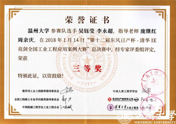 这种人才培养模式在实践中不断得到检验:2016年,日本色情片 工业工程专业参与完成的教学成果获浙江省高等教育教学成果一等奖;近三年获得省和国家的教改项目奖项三项。