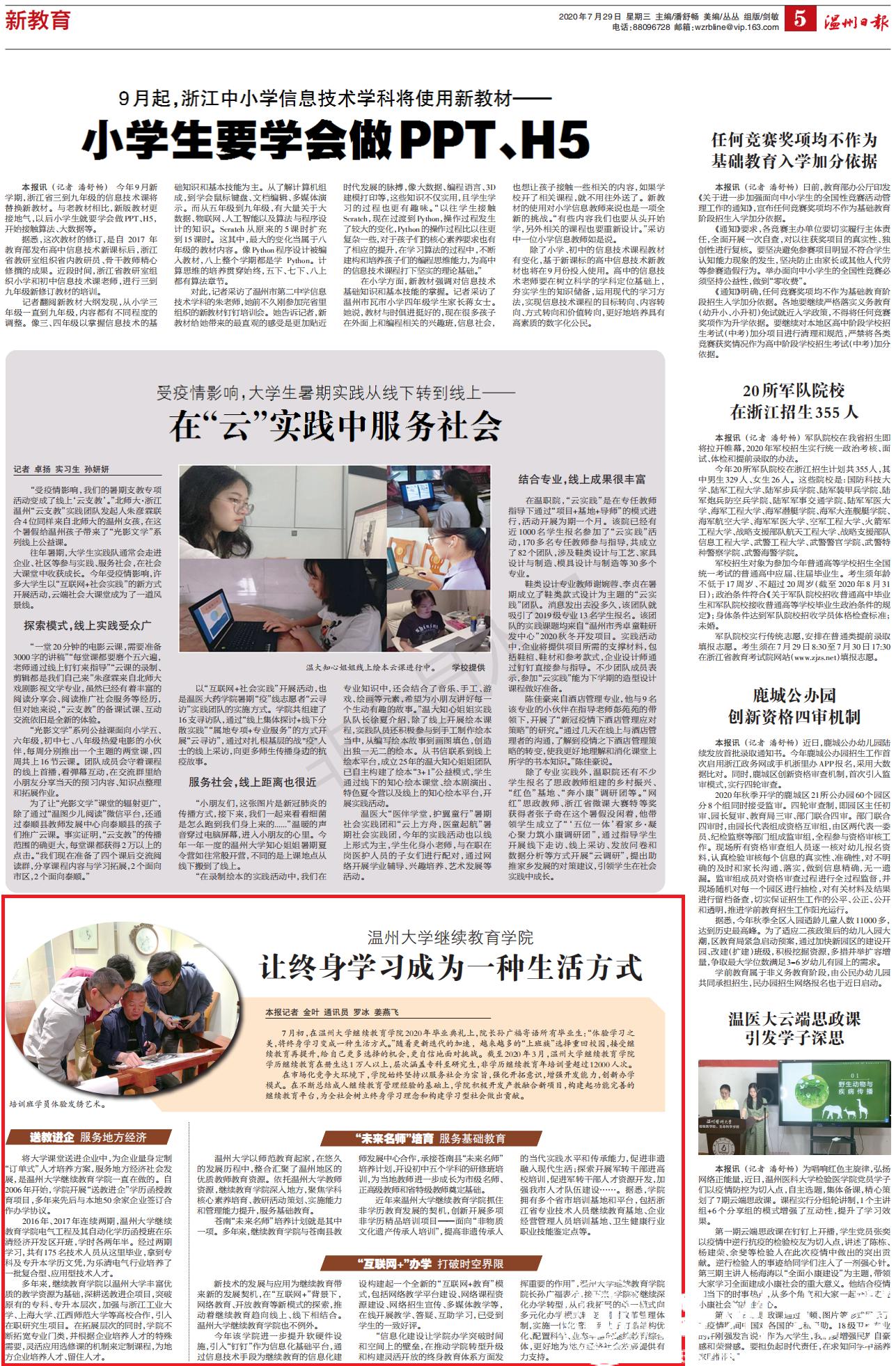 今年该学院进一步提升软硬件设施,引入“钉钉”作为信息化基础平台,通过信息技术手段为继续教育的信息化建设构建起一个全新的“互联网+教育”模式,包括网络教学平台建设、网络课程资源建设、网络招生宣传、多媒体教学等,在线开展教学、答疑、互助学习,已受到学生的一致好评。