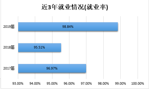 Ø 据2019年第三方调查数据,2019届毕业生就业率达98.84%,稳居全省前列