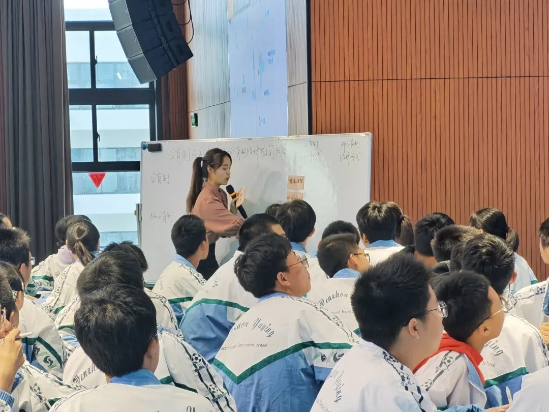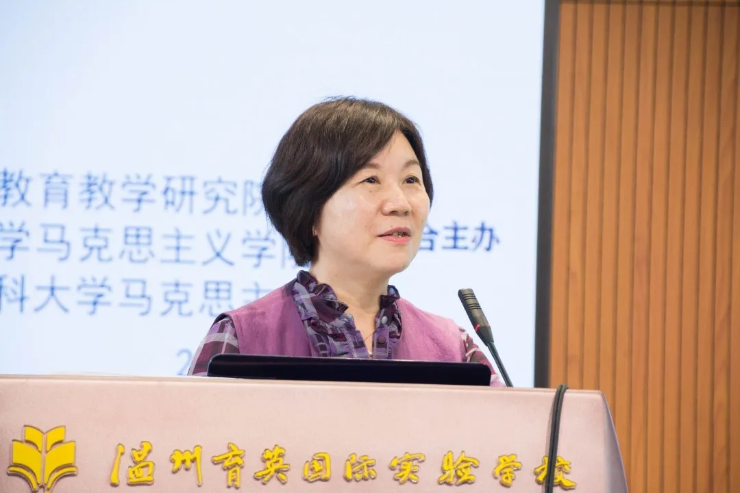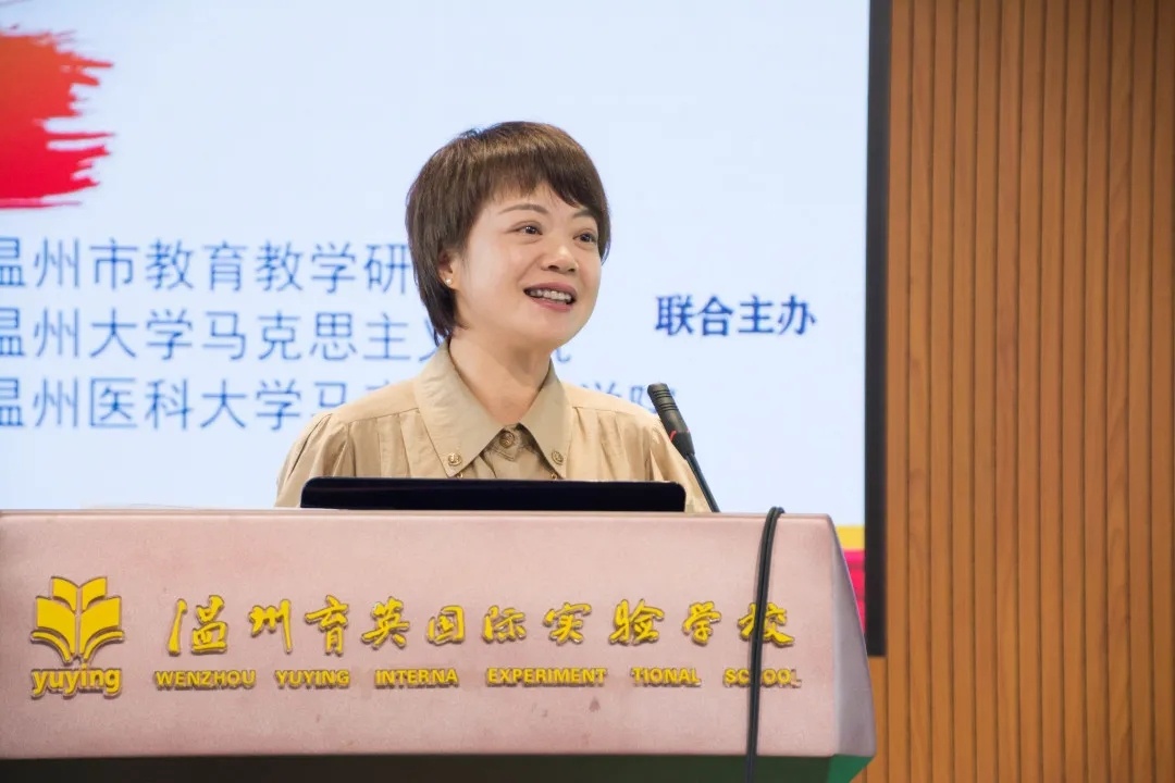 温州育英国际实验学校政治组教研组长姚丛艳做了《新教材落地中备课组思考与实践》专题讲座,从“困惑——解惑”、“做势——做事”的角度,阐述了在新教材教学过程中的探索实践,激起一线教师共鸣。