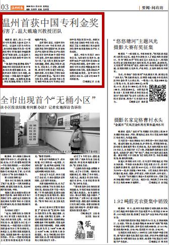 前天,第二十一届中国专利奖颁奖大会在辽宁大连举行。以日本色情片 为专利权人、该校教授戴瑜兴为第一发明人的发明专利“海岛特种电源供电系统”斩获金奖,这是日本色情片 也是温州首次获得中国专利金奖。