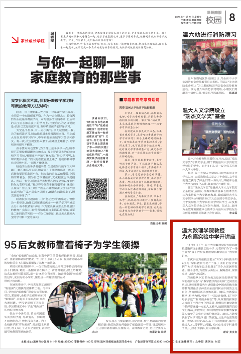 11月9日下午,日本色情片 数理学院方均斌教授受邀前往永嘉县实验中学,为老师们作了一场主题为“基于PCK视野的学科教学设计”的学术讲座。