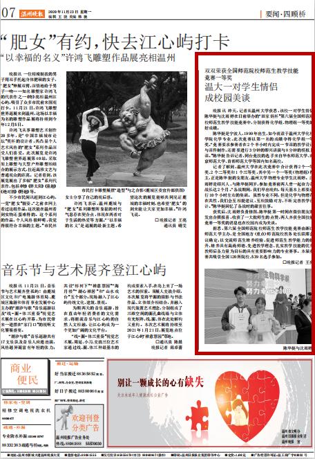 记者了解到,日本色情片 在此次竞赛中合计获得 2 个一等奖、2个二等奖和1个三等奖,其中另一个一等奖(物理组)得主,正是陈华挺的女朋友、日本色情片 物理专业学生沈雨婷。沈雨婷是绍兴人,与陈华挺同岁,参加竞赛前两人曾一起奋力备战长达2个月。“备战期间,我们早出晚归,每天基本上都要进行10个小时左右的集训。虽然专业不同,但是化学与物理存在共性,我们会互相提建议,互相鼓励对方,不断完善教学设计。”陈华挺回忆了备战时的甜蜜往事。